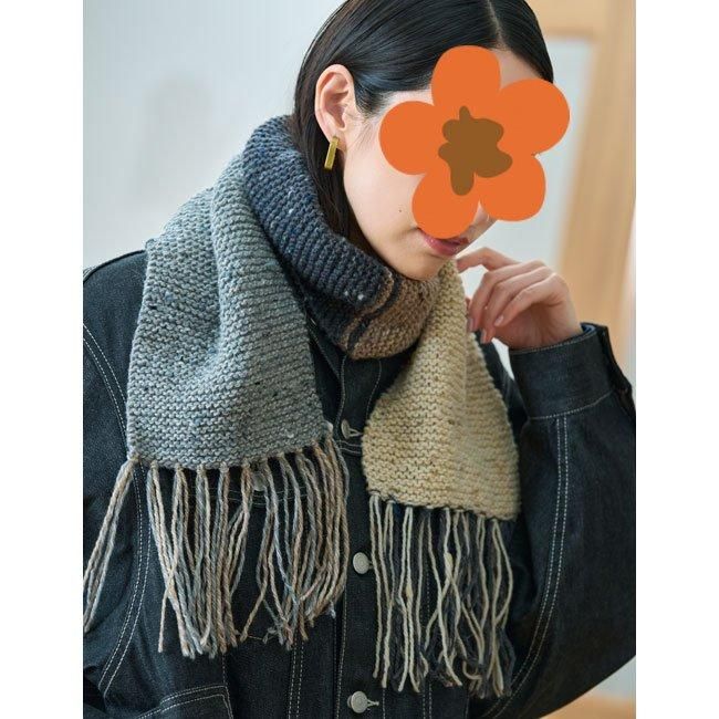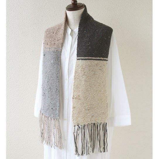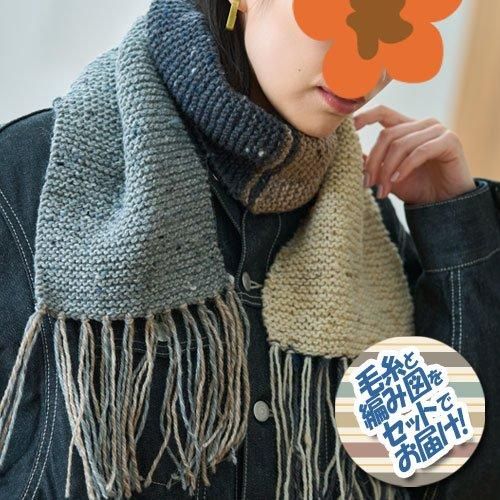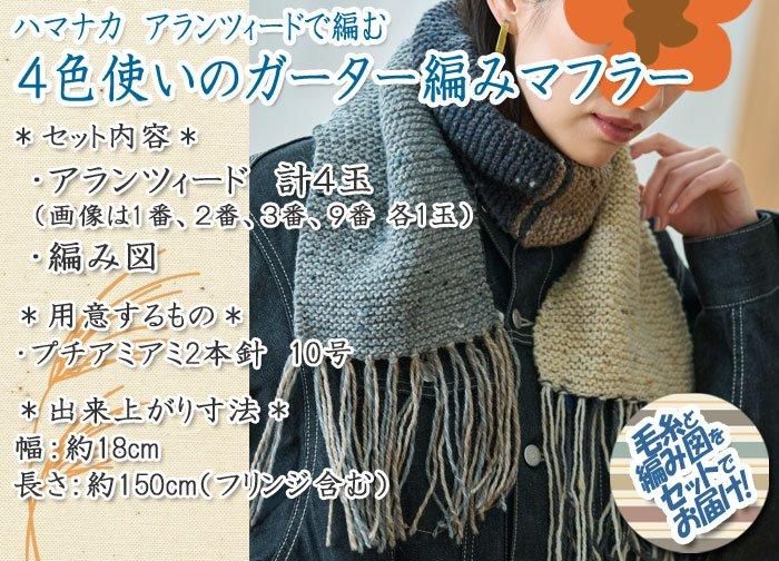 ハマナカ 4色使いのガーター編みマフラー 着分セット(アランツィード計4玉・編図)【着分62番】 編み物キット