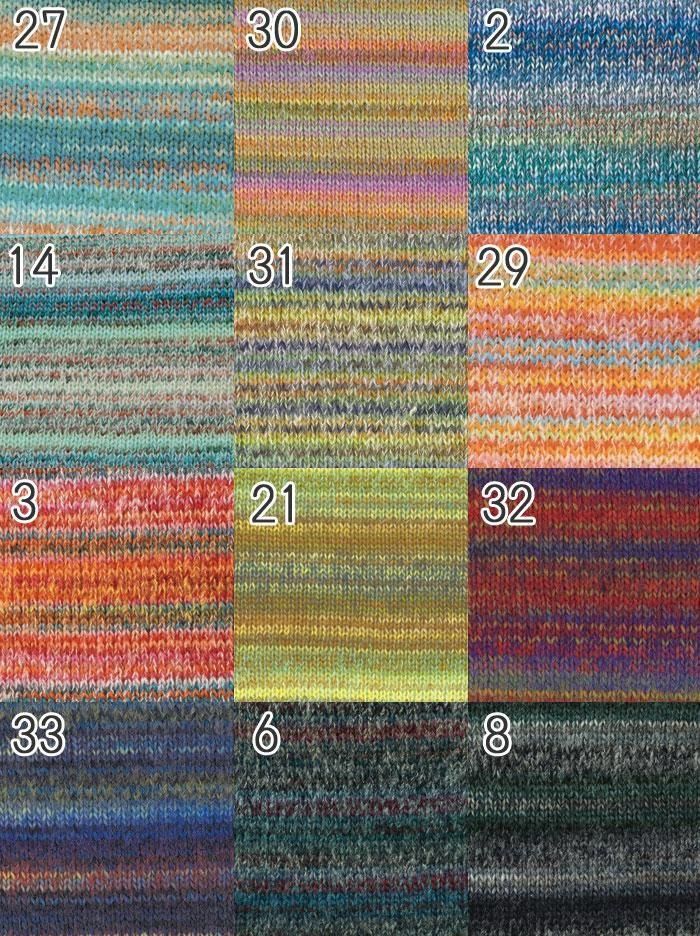 ディーナは、自然の生みだす鉱物をイメージして10色をミックスした複雑なタッチのグラデーション並太ヤーン。簡単な編み地でも深みのある作品に仕上がります。アルパカ混の起毛糸にウールを巻きつけ、量感を持たせながらも軽くソフトな肌ざわりに仕上がっています。洗濯機で丸洗いできるので家庭でのお手入れがとても簡単です。