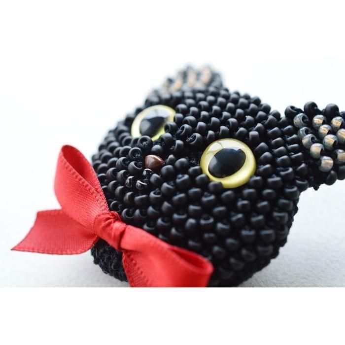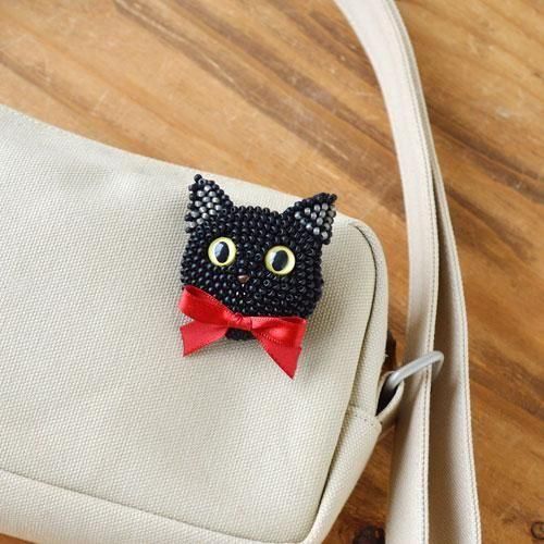 MIYUKI(ミユキ) かぎ針で編む ビーズ編みの猫ブローチキット 黒猫