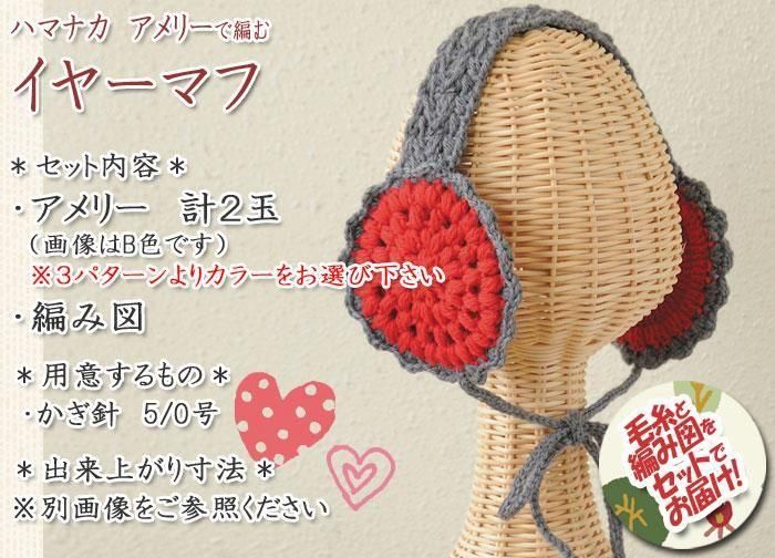ハマナカ アメリーで編むイヤーマフ 着分セット(アメリー計2玉・編図)【着分119番】 編み物キット