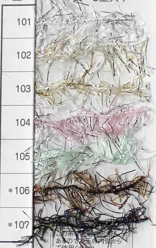 「金属的なファー」を意味するその名は、金属の光が弾ける様な形状から名付けられています。キラキラ・フワフワとした仕上がりに心がときめきます。編み心地が良くウエア・小物共にお楽しみいただけます。