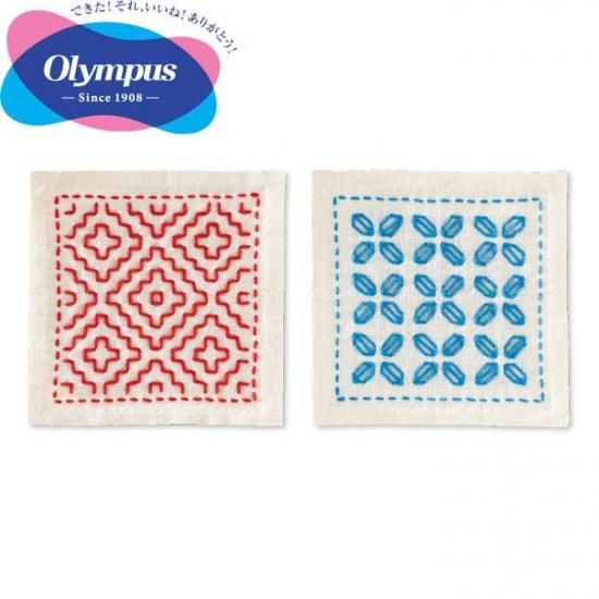 オリムパス 刺し子 一目刺し スターターキット コースター(2枚組) 柿の花・花菱
