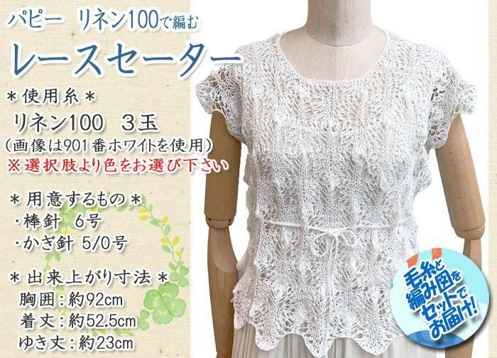パピー レースセーター 着分セット(リネン100【3玉】・編図)【着分03番】 編み物キット