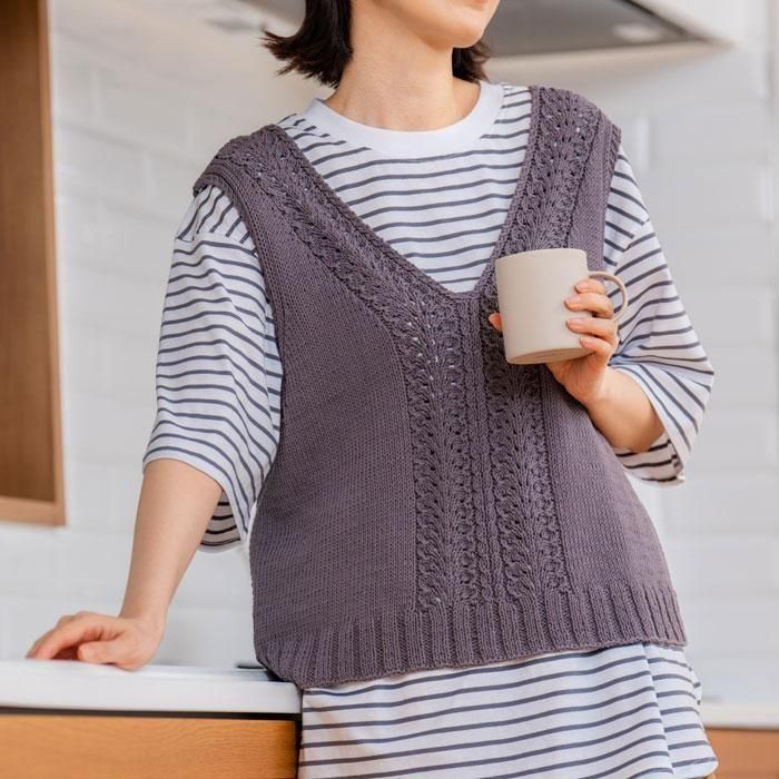 ハマナカ 透かし模様のVネックベスト 着分セット(カポックコットン8玉・編図)【着分55番】 編物キット