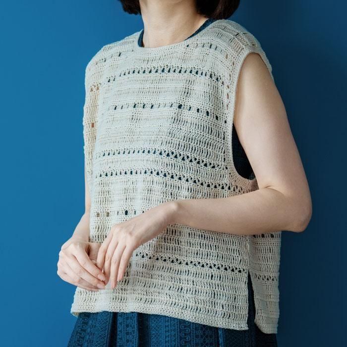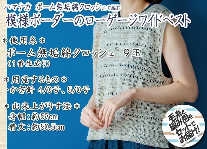 ハマナカ 模様ボーダーのローゲージワイドベスト 着分セット(ポーム無垢綿クロッシェ9玉・編図)【着分73番】