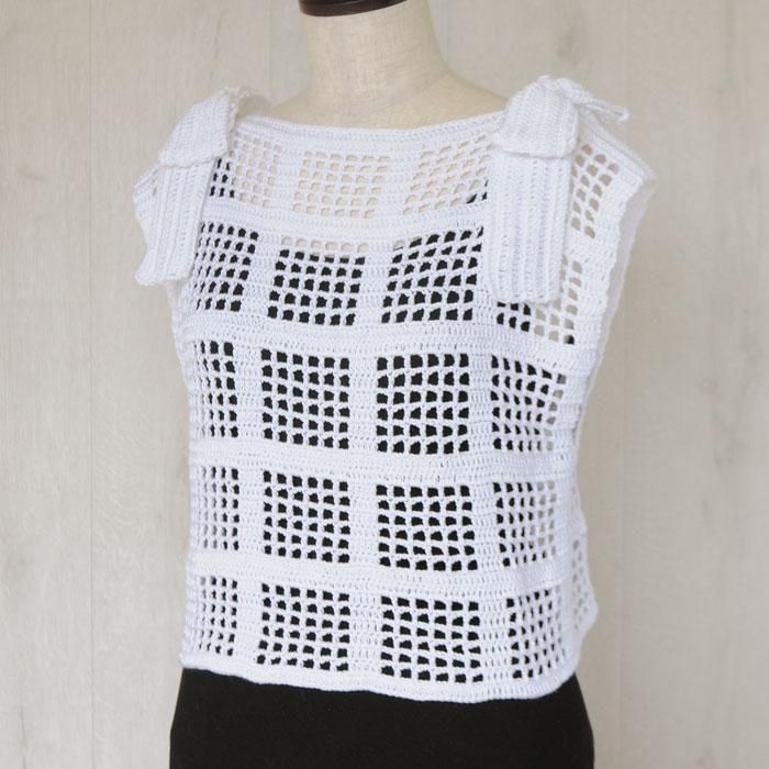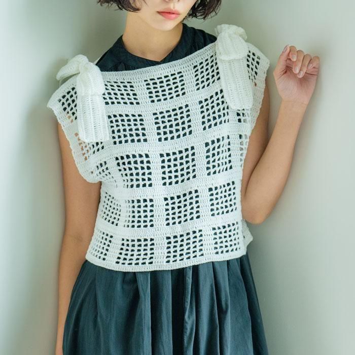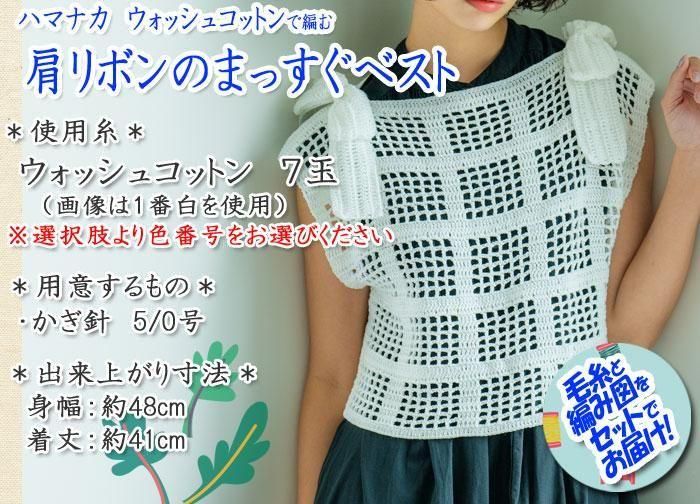 ハマナカ 肩リボンのまっすぐベスト 着分セット(ウォッシュコットン7玉・編図)【着分98番】 編み物キット