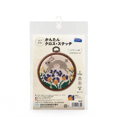 【おしゃれフープ付き】オリムパス 刺しゅうキット かんたんクロス・ステッチ お花畑で跳ねるうさぎ【刺繍キット】