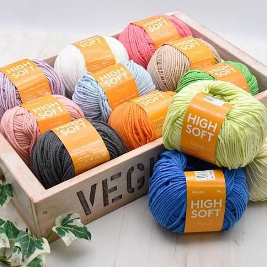 綿とアクリルをバランスよく組み合わせ、柔らかく弾力のある仕上がりになっています。あみぐるみや小物、ウエアなどによく使われる定番の糸で、美しい発色と豊富なカラーバリエーションと程よい厚みになる編み地が愛されています。韓国の国内生産・国内染色による信頼性の高い品質で、しっかりとした厚みのある仕上がり。太めの針を使ってざっくりとした編地にしてもよく映えるため、幅広い作品にお使いいただけます。