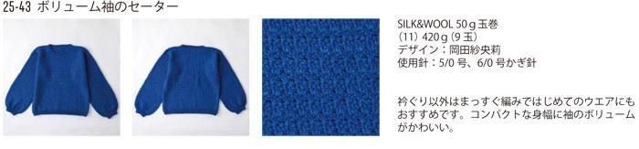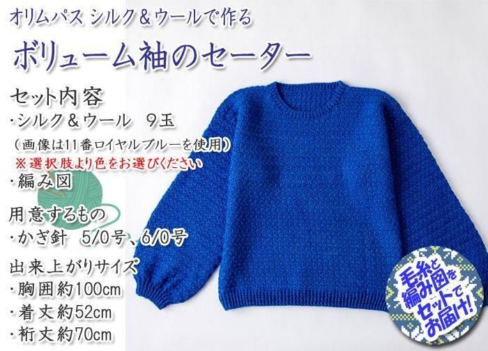 オリムパス ボリューム袖のセーター 着分セット(SILK&WOOL(シルク&ウール)9玉・編図)【着分29番】 編み物キット