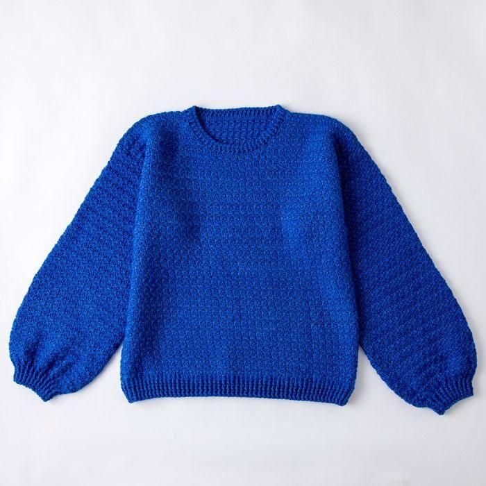 衿ぐり以外はまっすぐ編みではじめてのウエアにもおすすめです。コンパクトな身幅に袖のボリュームがかわいい。