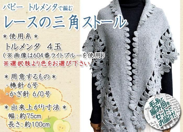 パピー レースの三角ストール 着分セット(トルメンタ4玉・編図)【着分20番】 編み物キット