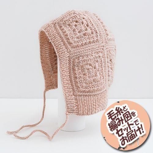 ダルマ(横田)クロッシェモチーフフーディーキャップ 着分セット(原毛に近いメリノウール2玉・編図)【着分77番】 編み物キット