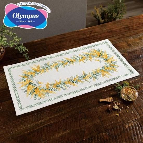 オリムパス 刺しゅうキット テーブルセンター オノエ・メグミ ミモザコレクション ミモザのリース【刺繍キット】