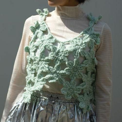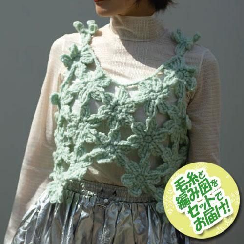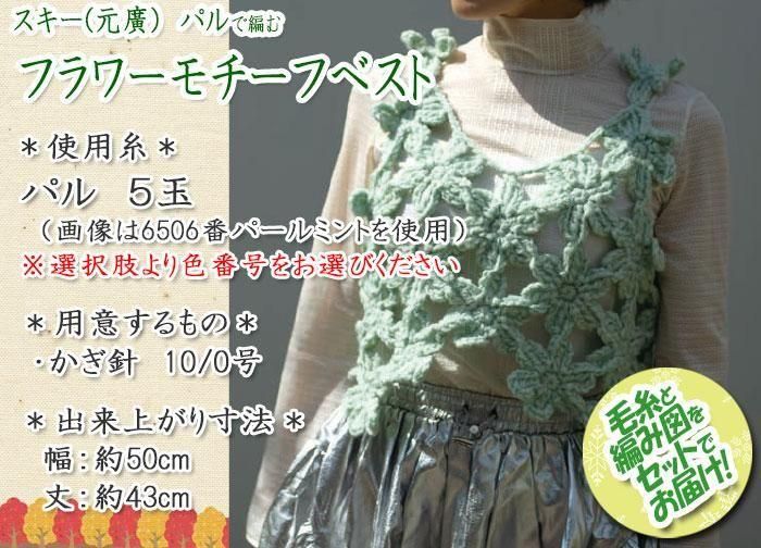 スキー(元廣)  フラワーモチーフベスト 着分セット(パル5玉・編図)【着分57番】 編み物キット