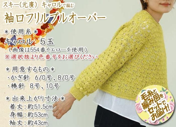 スキー(元廣)  袖口フリルプルオーバー 着分セット(キャロル5玉・編図)【着分58番】 編み物キット