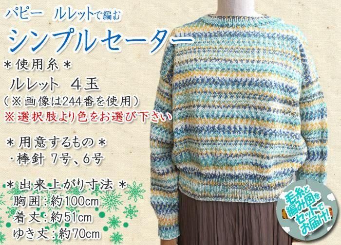 パピー シンプルセーター 着分セット(ルレット4玉・編図)【着分21番】 編み物キット