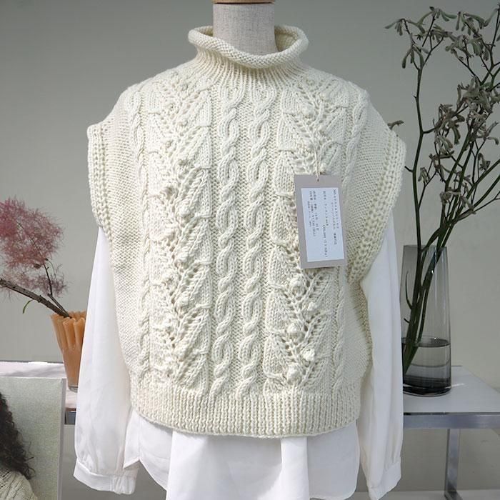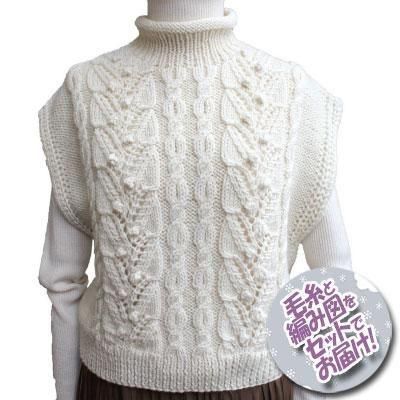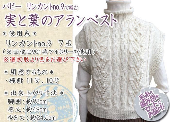 パピー 実と葉のアランベスト 着分セット(リンカント【no.9】7玉・編図)【着分23番】 編み物キット