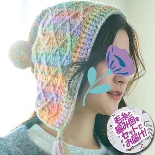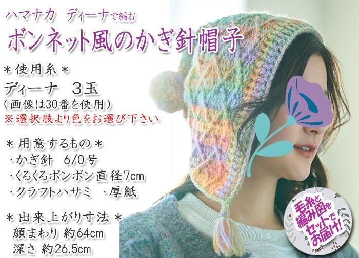 ハマナカ ボンネット風のかぎ針帽子 着分セット(ディーナ3玉・編図)【着分33番】 編み物キット