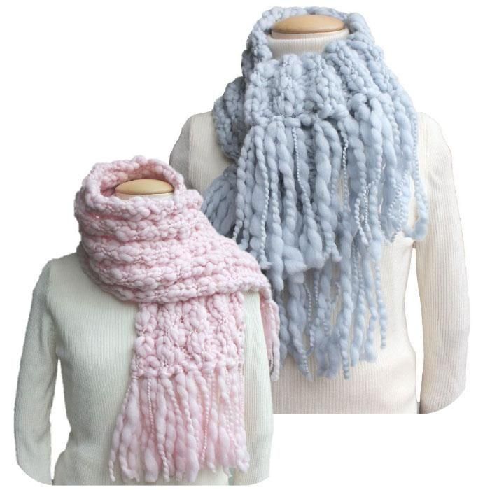 素材の凹凸をいかしたシンプルなゴム編みのマフラー。フリンジを付けたら、それはまるでクリーミーなお菓子のよう!