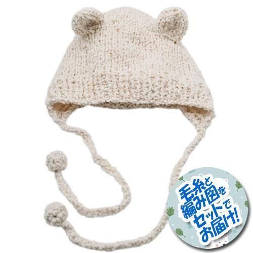 内藤商事 クマ耳の帽子 着分セット(ドトムブークレ1玉・編図)【着分20番】 編み物キット