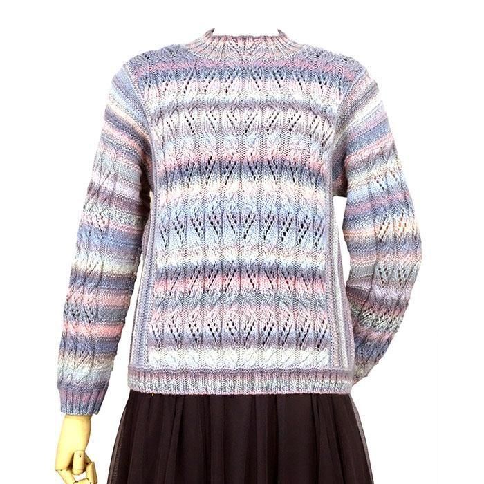 フーレは、多色のロンググラデーションで太い糸と細い糸を作り、その2本が撚糸されていて、糸に立体感がありふくらみのある編地に仕上がります。