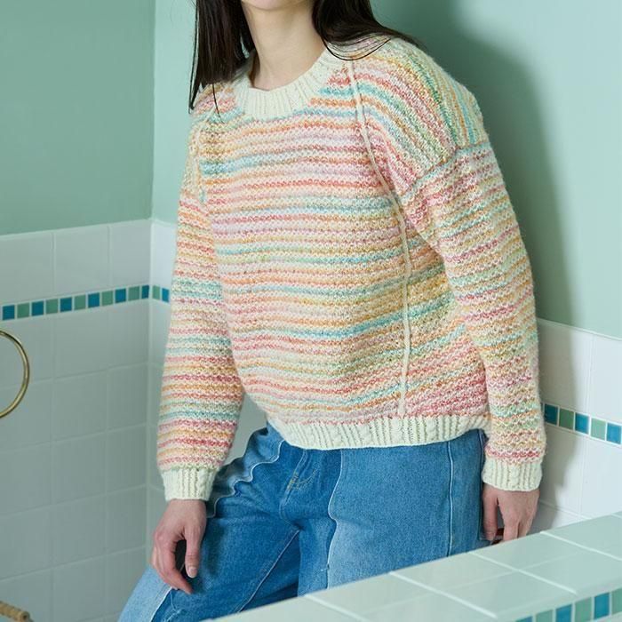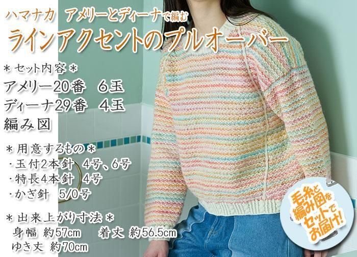 ハマナカ ラインアクセントのプルオーバー 着分セット(アメリー20番6玉・ディーナ29番4玉・編図)【着分108番】 編み物キット