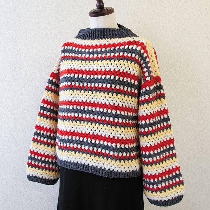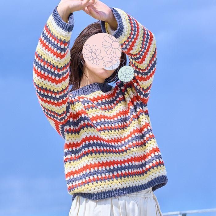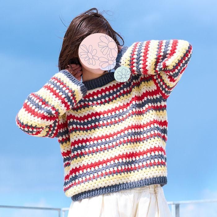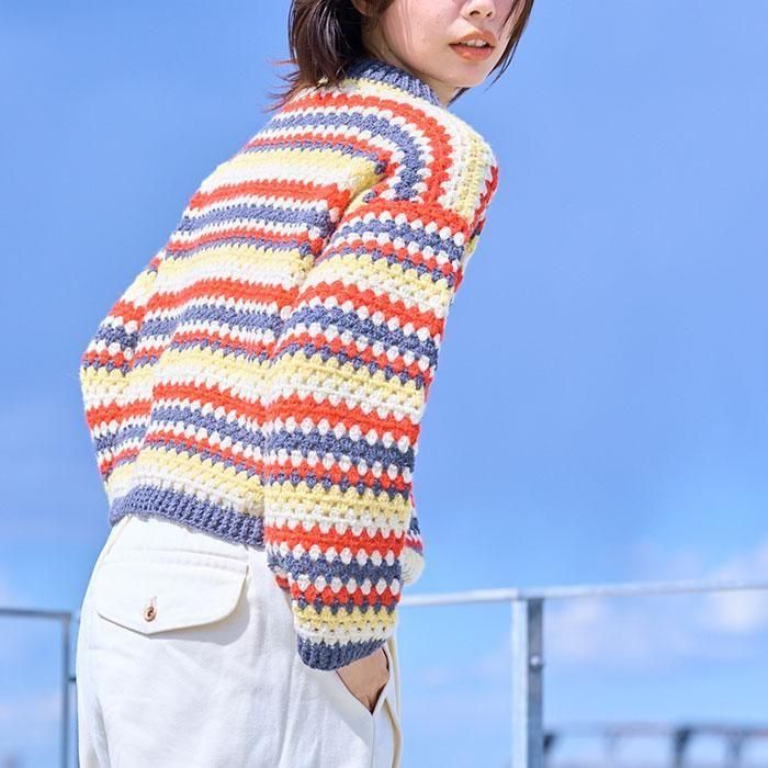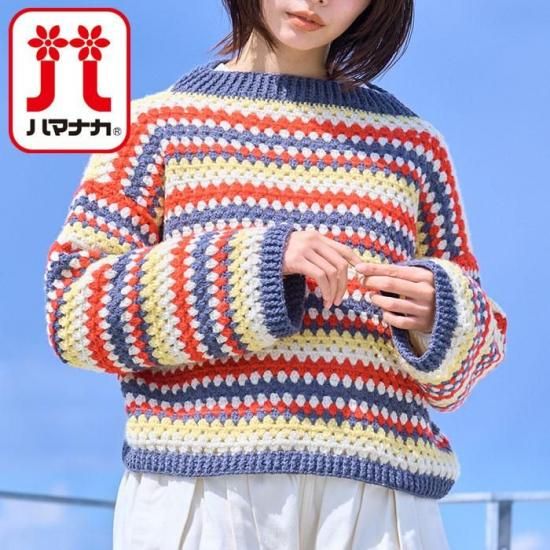 【キットでお得】ハマナカ 編み物キット アルパニカで編む ボーダー柄のかぎ針プルオーバー