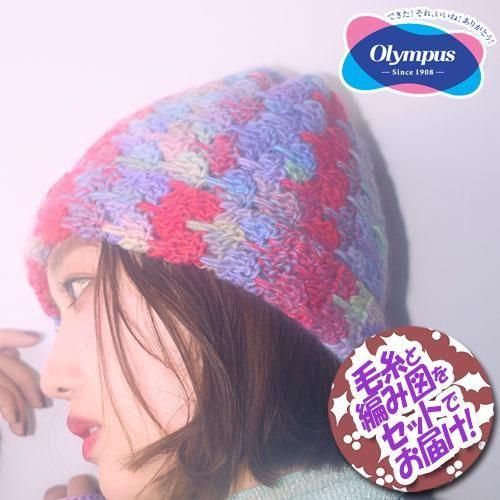 オリムパス パネル模様の帽子 着分セット(メイクメイク3玉・編図)【着分08番】 編み物キット