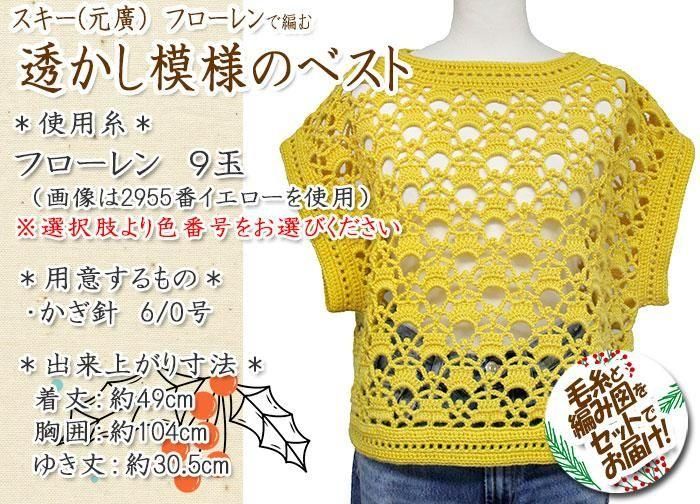 スキー(元廣)  透かし模様のベスト 着分セット(フローレン9玉・編図)【着分59番】 編み物キット