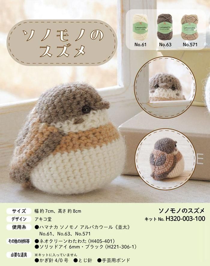 【目・わた入り】ハマナカ 編み物キット ソノモノのスズメ 編みぐるみ