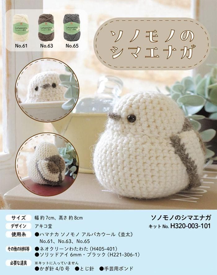 【目・わた入り】ハマナカ 編み物キット ソノモノのシマエナガ 編みぐるみ