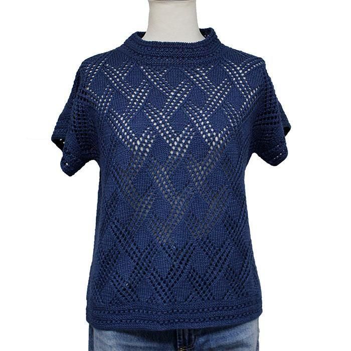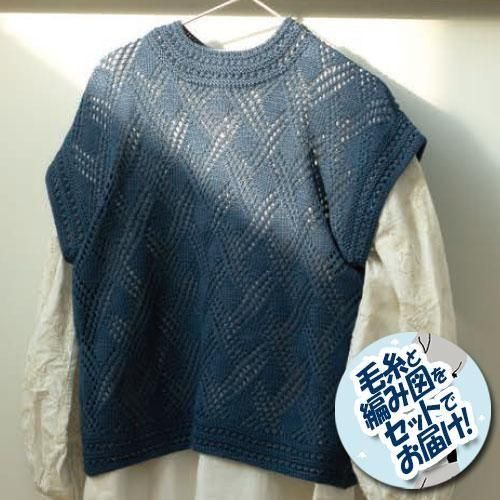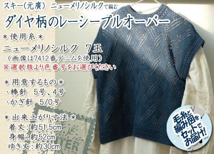 スキー(元廣)  ダイヤ柄のレーシープルオーバー 着分セット(ニューメリノシルク7玉・編図)【着分60番】編み物キット