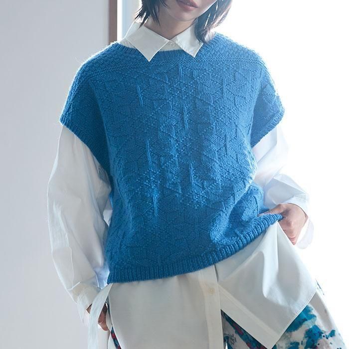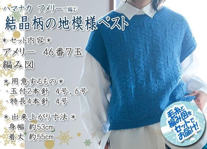 ハマナカ 結晶柄の地模様ベスト 着分セット(アメリー46番7玉・編図)【着分117番】 編み物キット